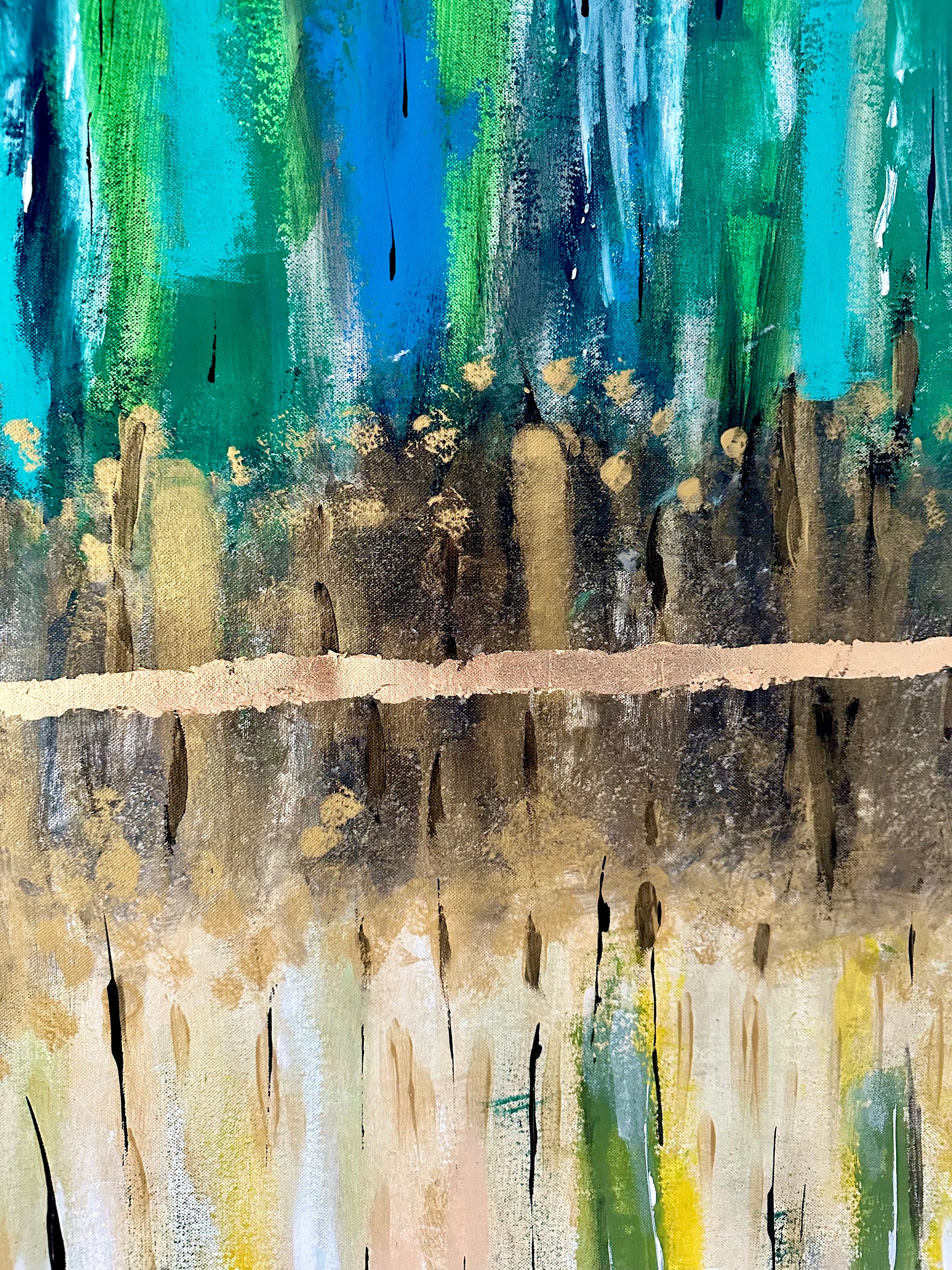 Mixed media acrylic painting on 100% stretched cotton canvas.