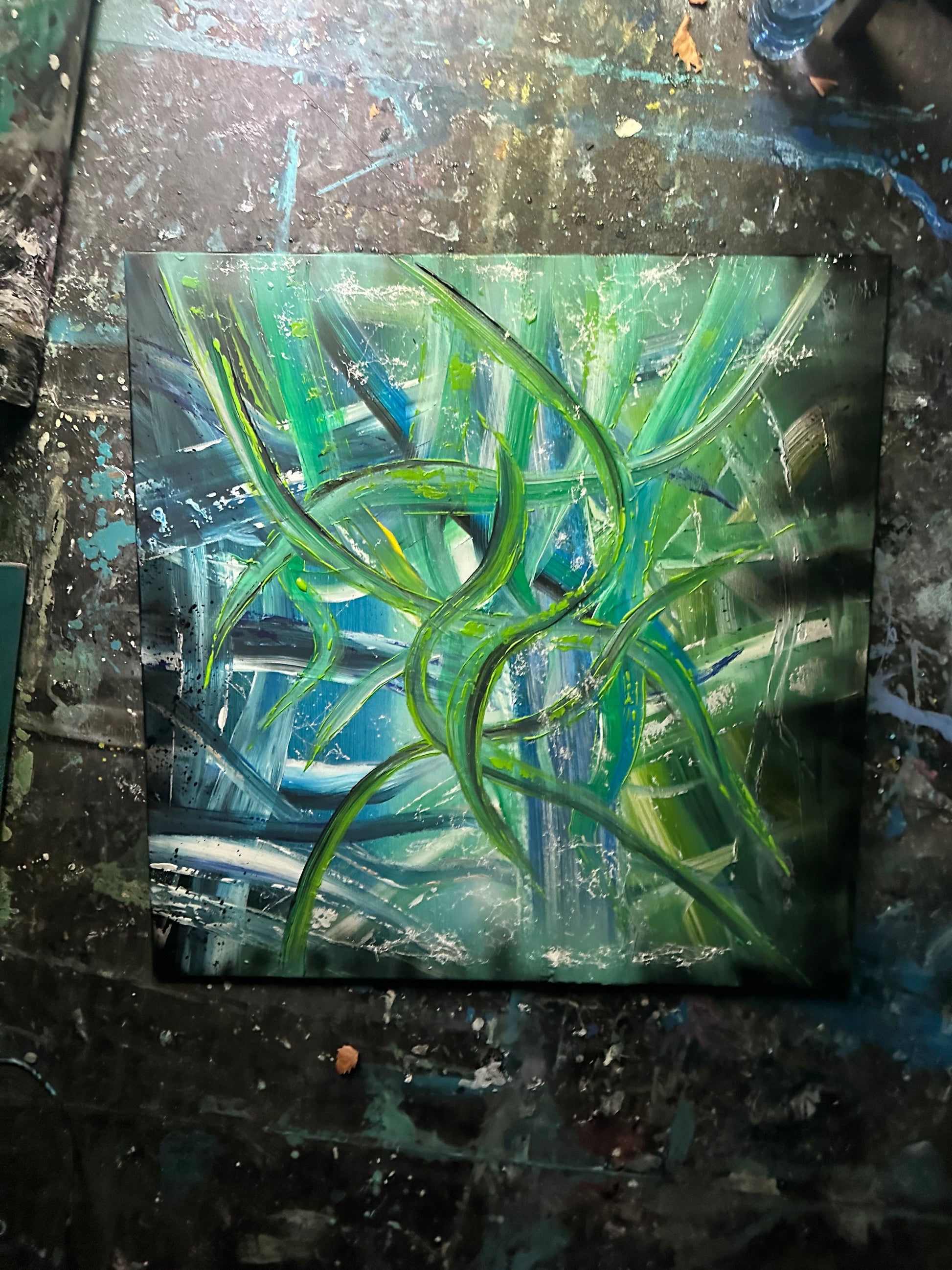 Acrylic abstract painting on 100% cotton canvas.