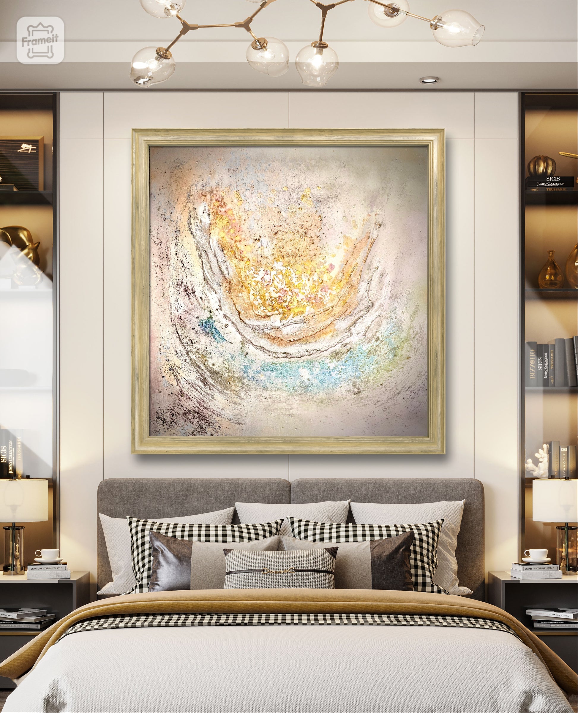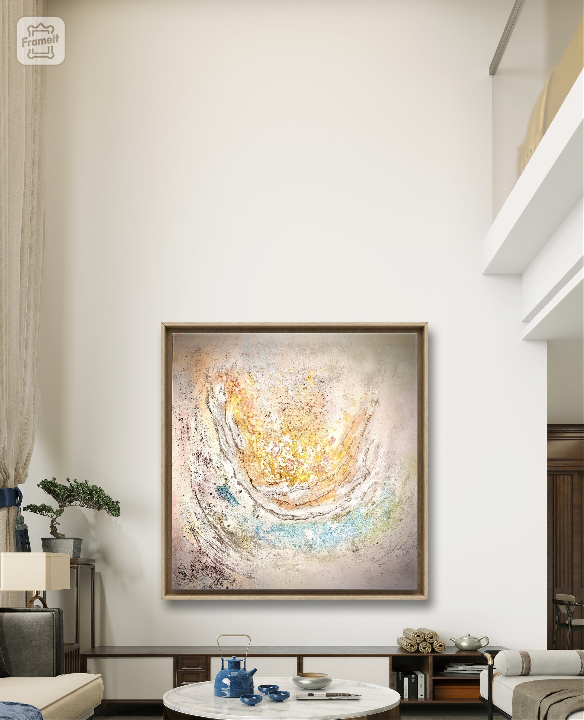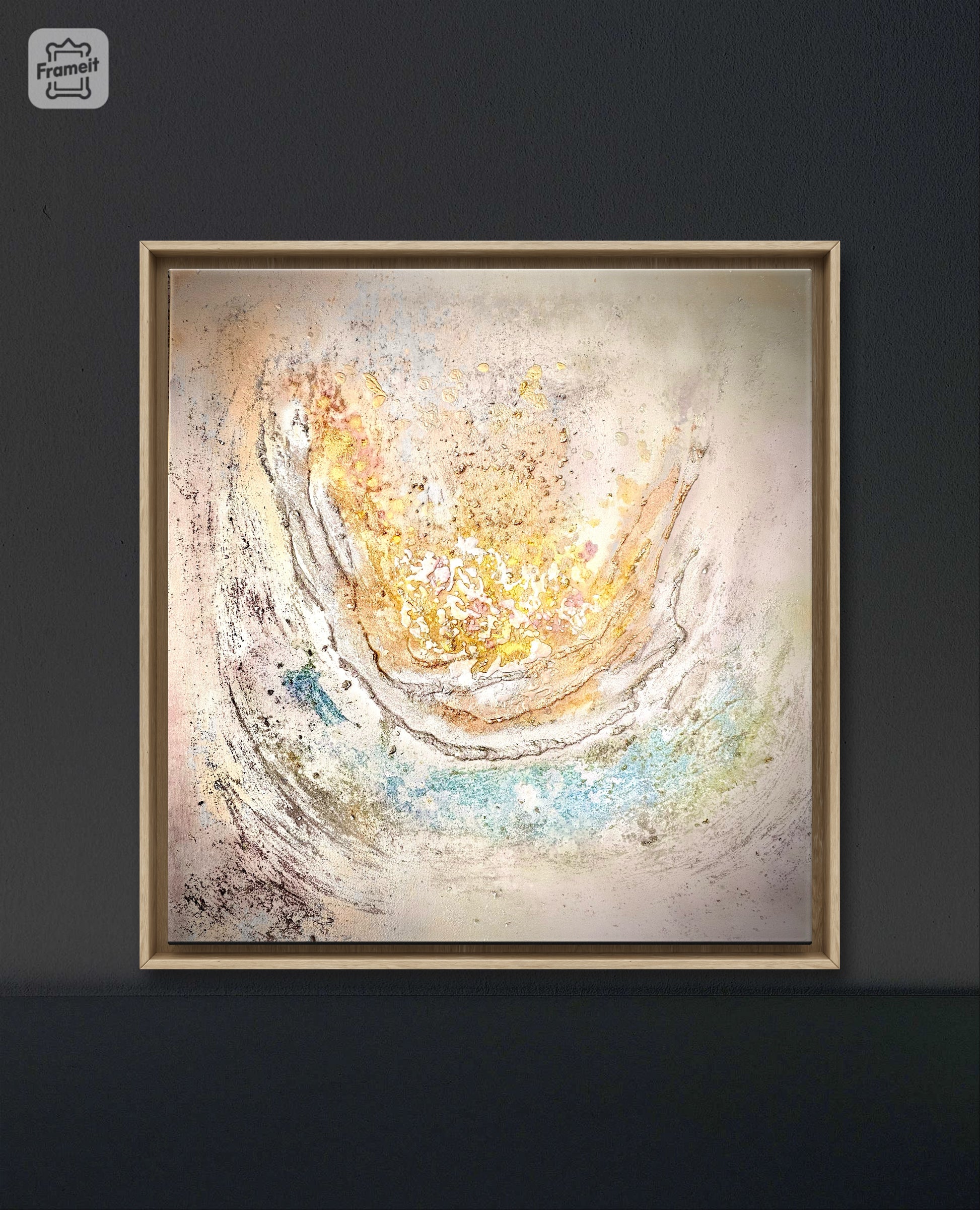 Abstract acrylic painting made with resin and structure paste.