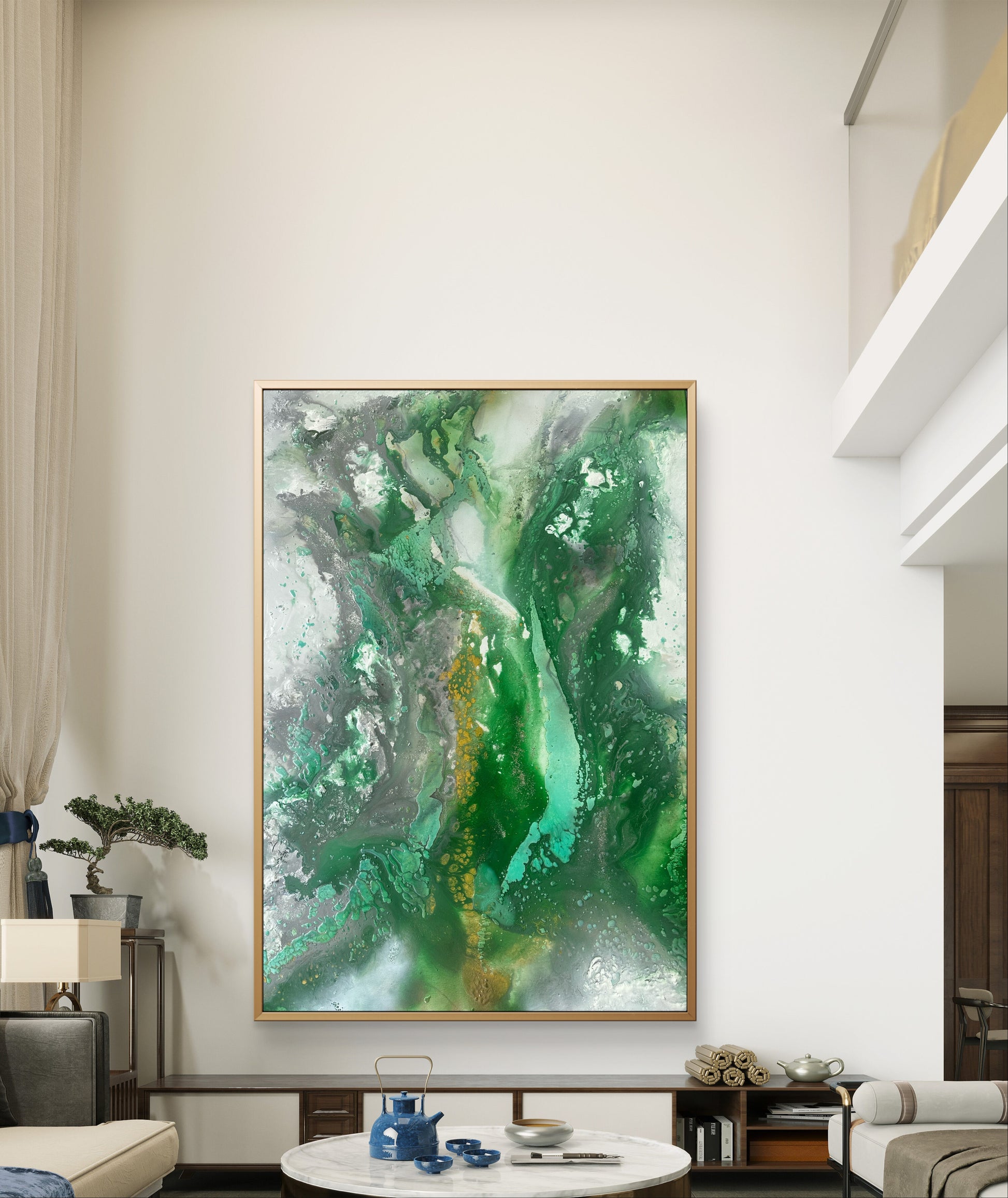 Acrylic and epoxy mix abstract painting on 100% stretched cotton canvas.
