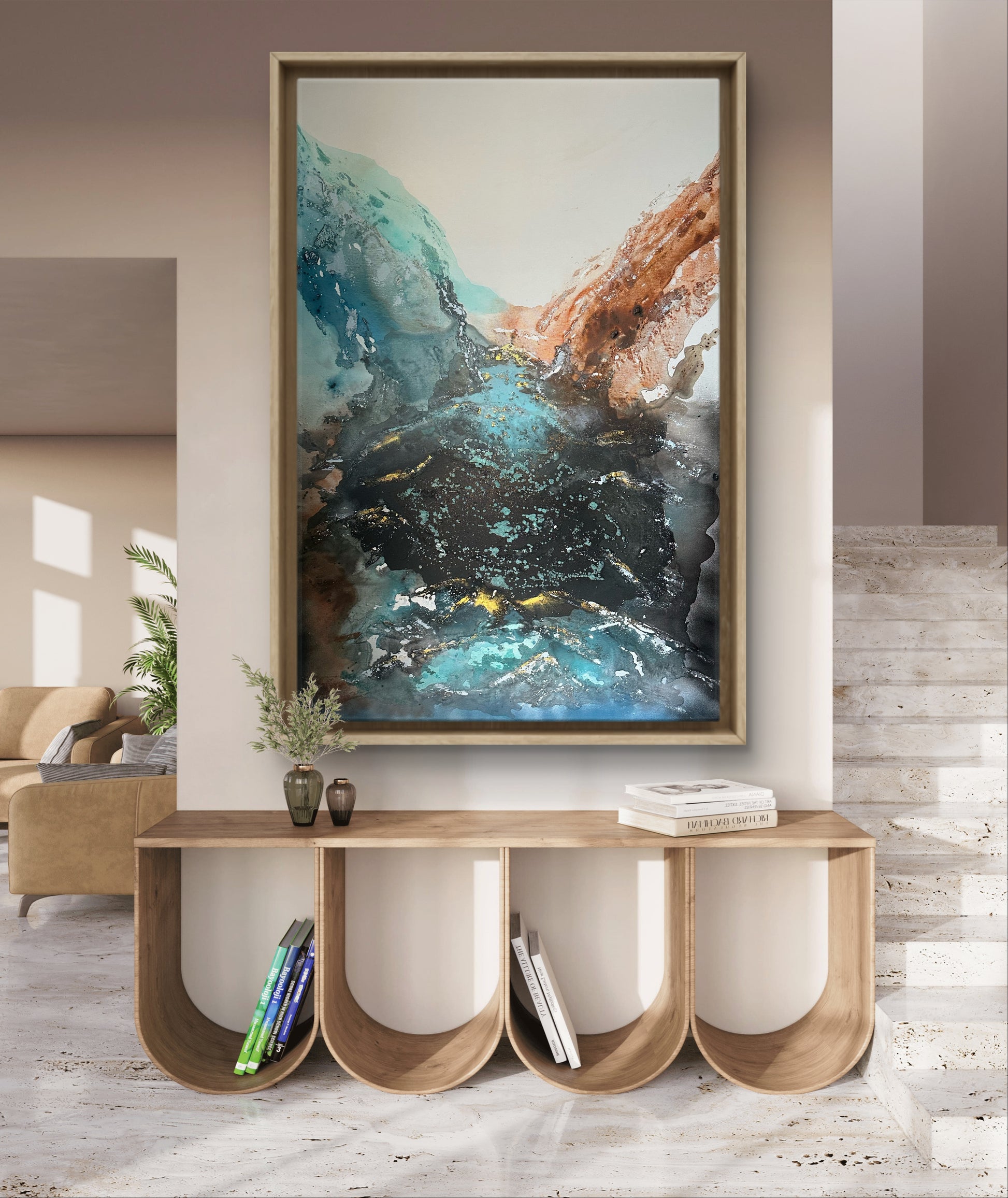 Abstract acrylic painting on 100 % stretched cotton canvas.