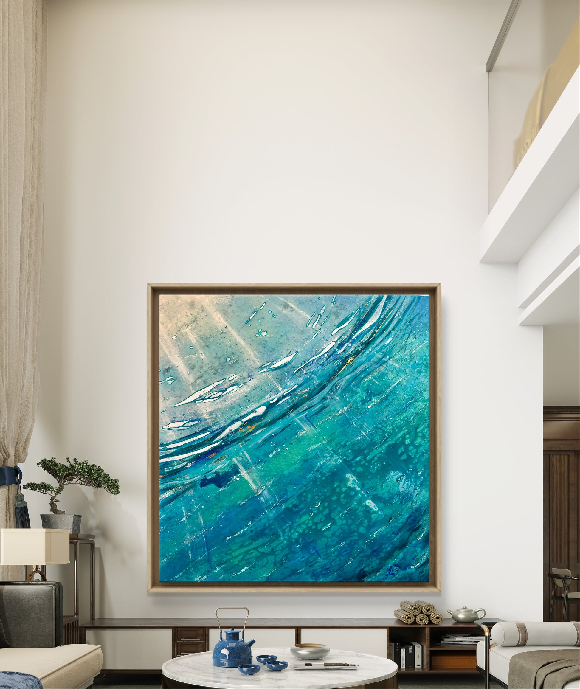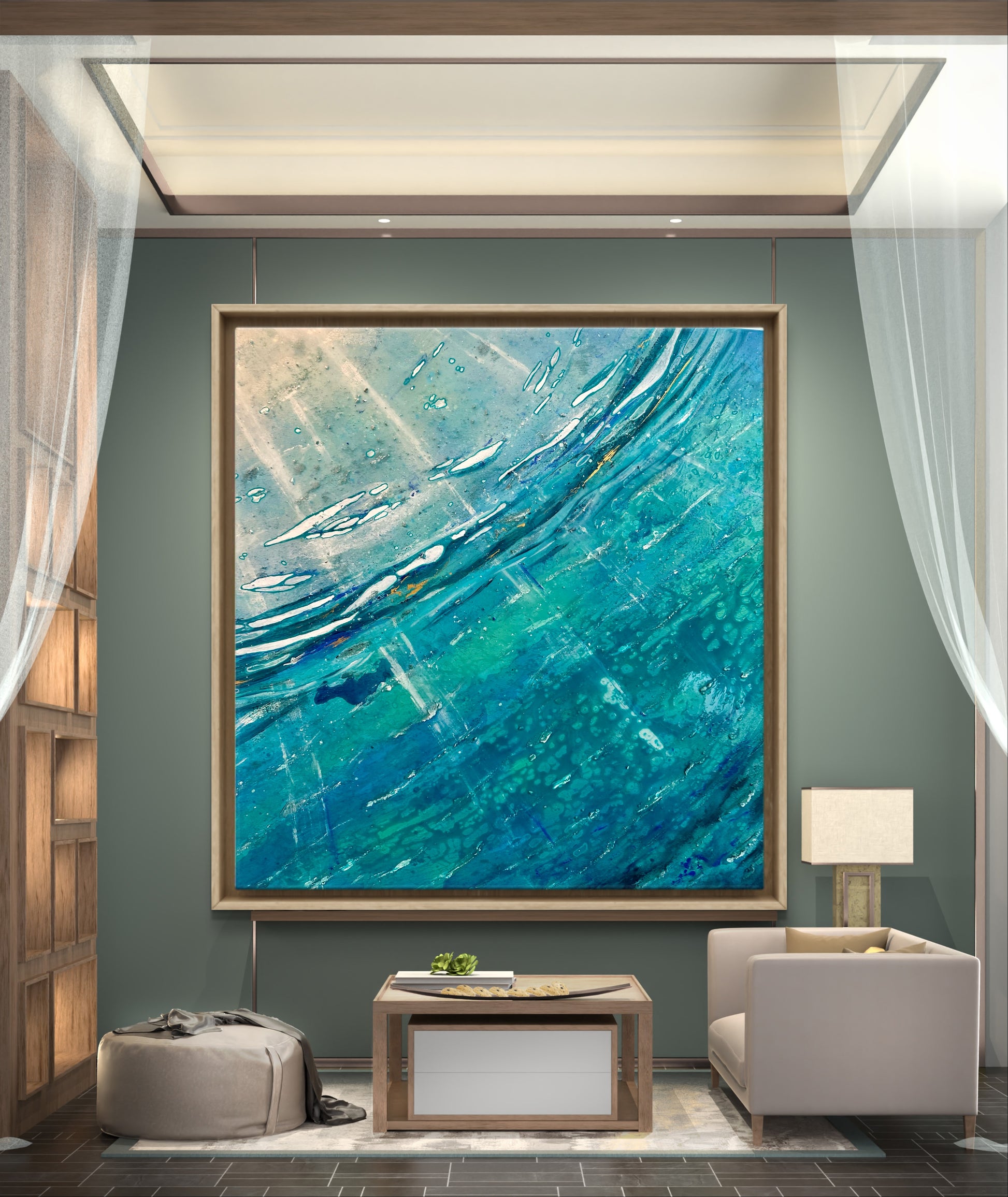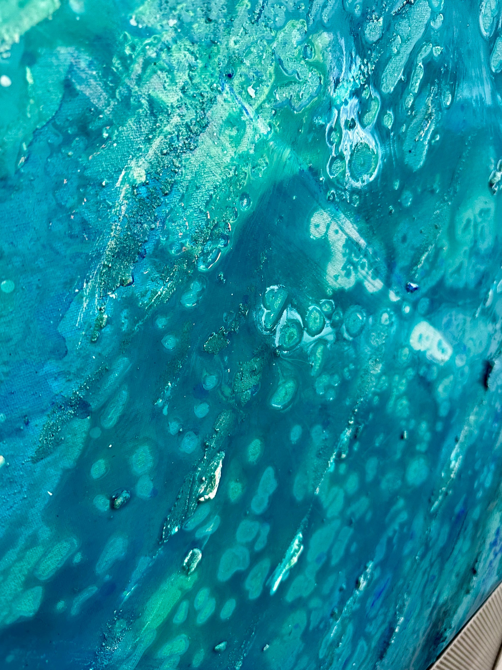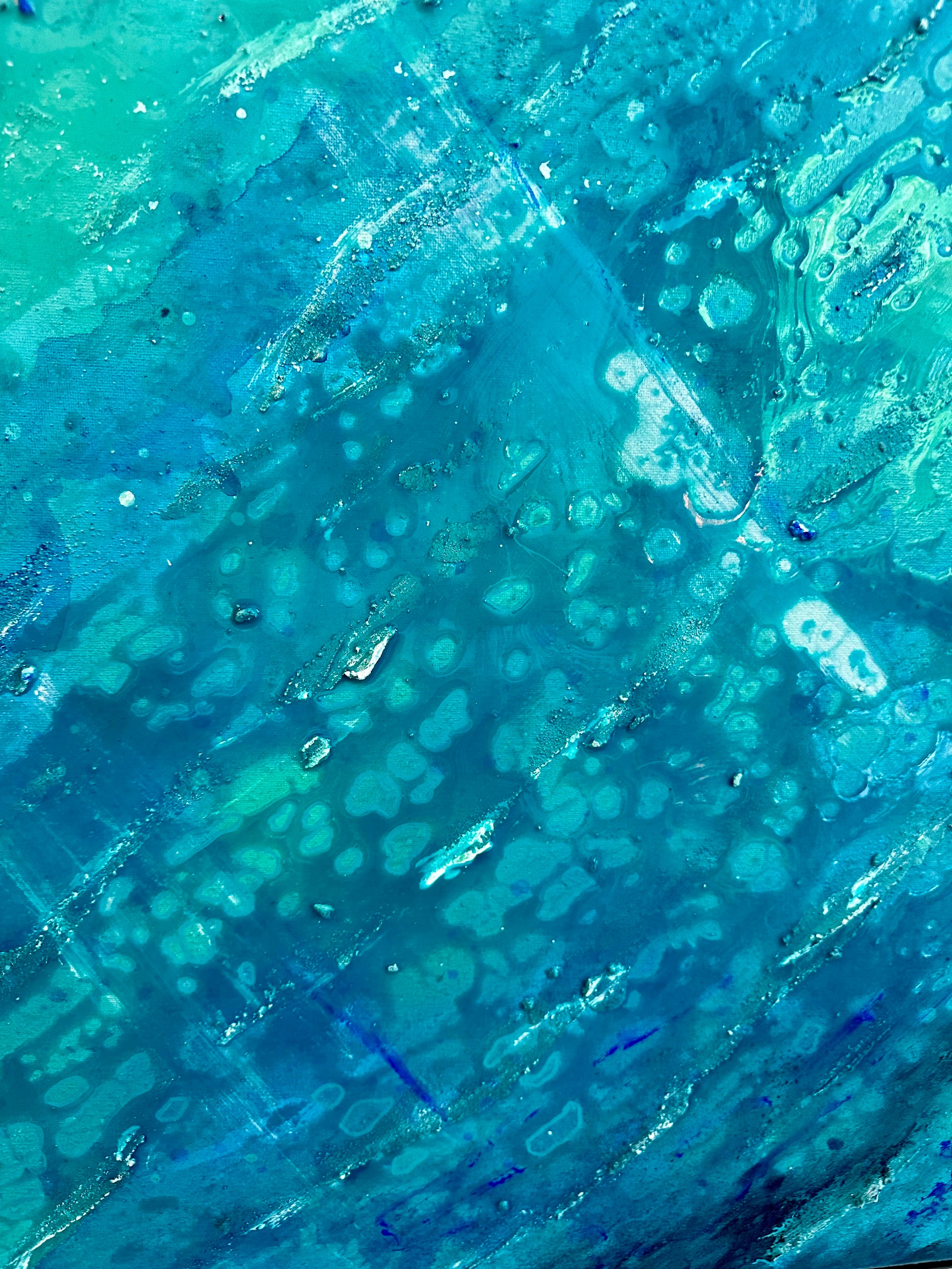 Acrylic abstract canvas on 100% cotton canvas covered with epoxy and diamond dust.