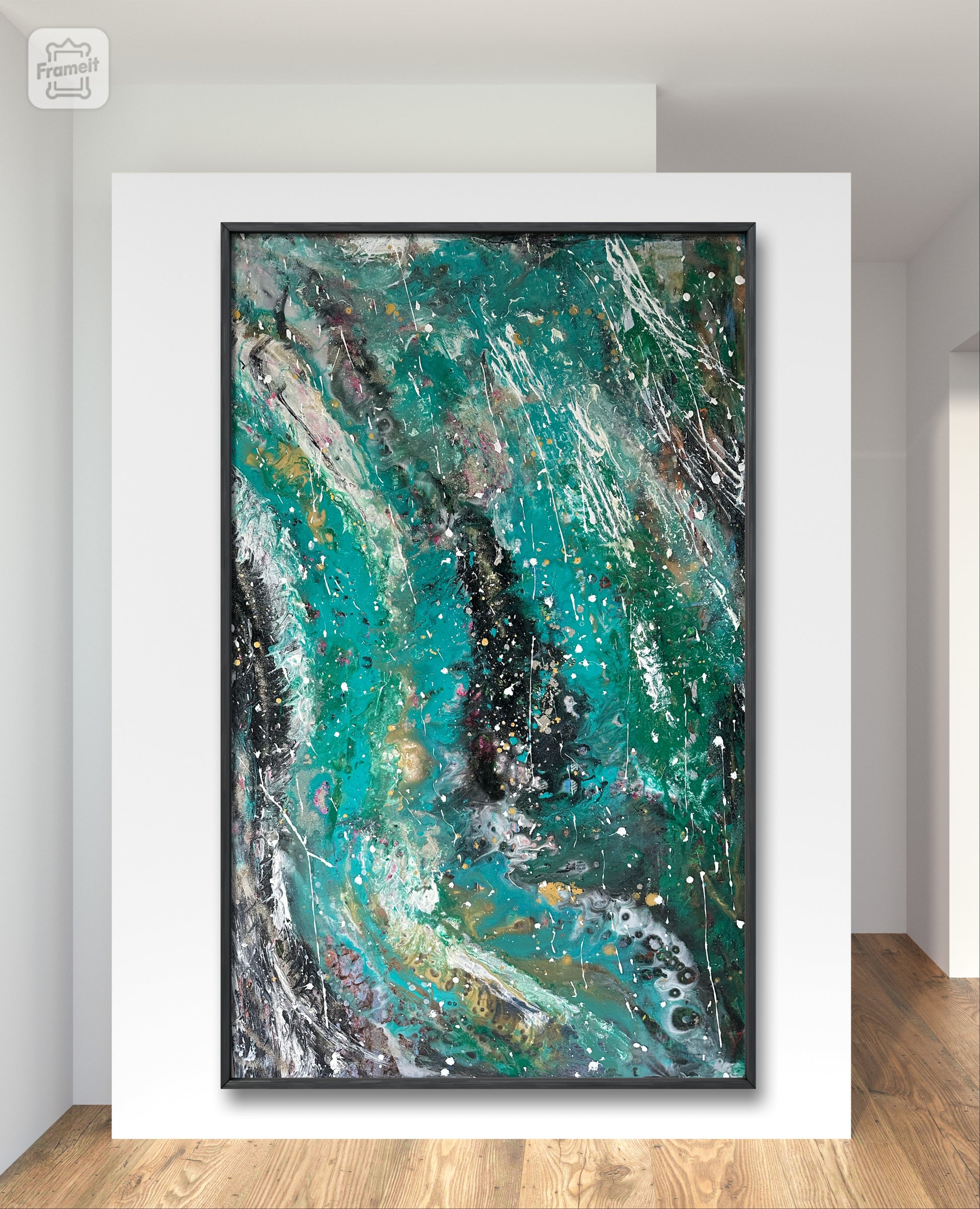 Mix splash is acrylic abstract painting on canvas finished with epoxy varnish.