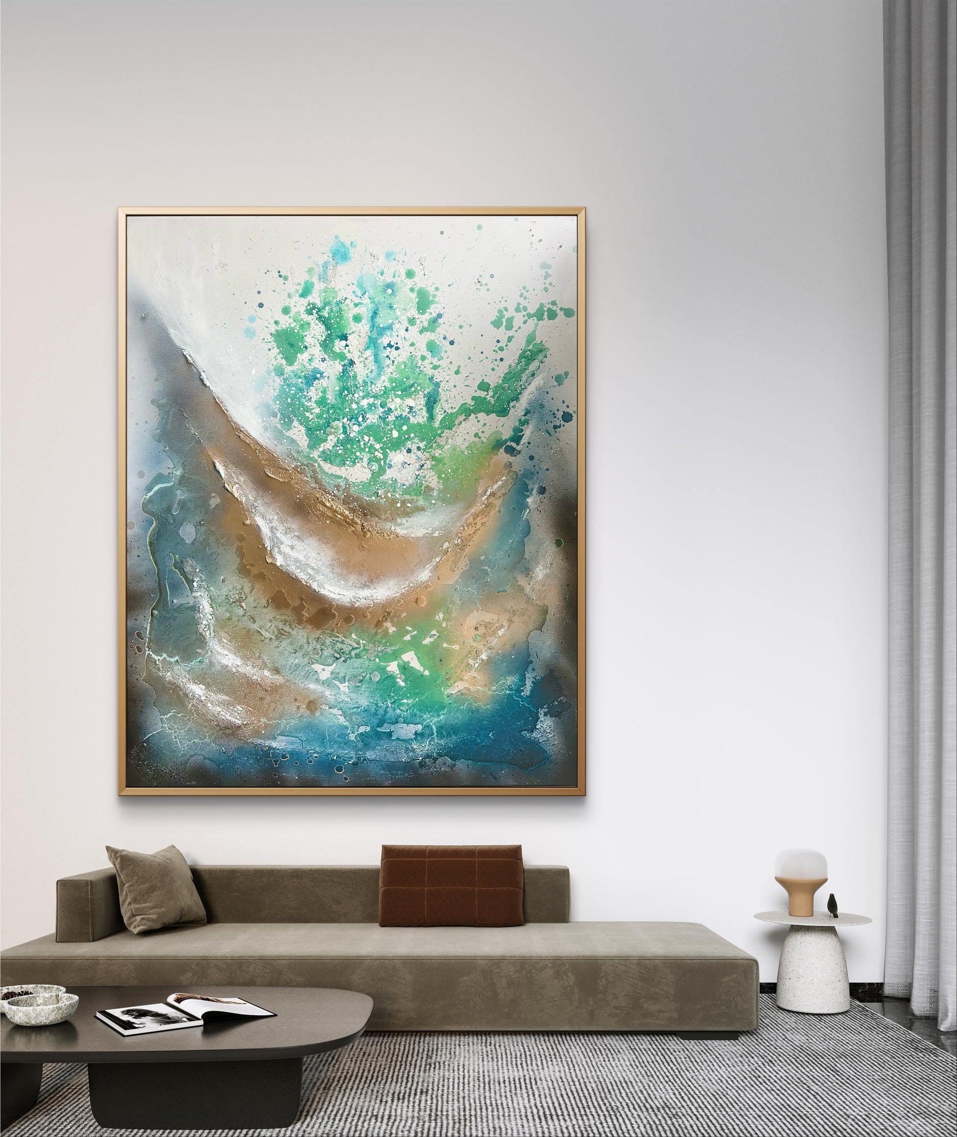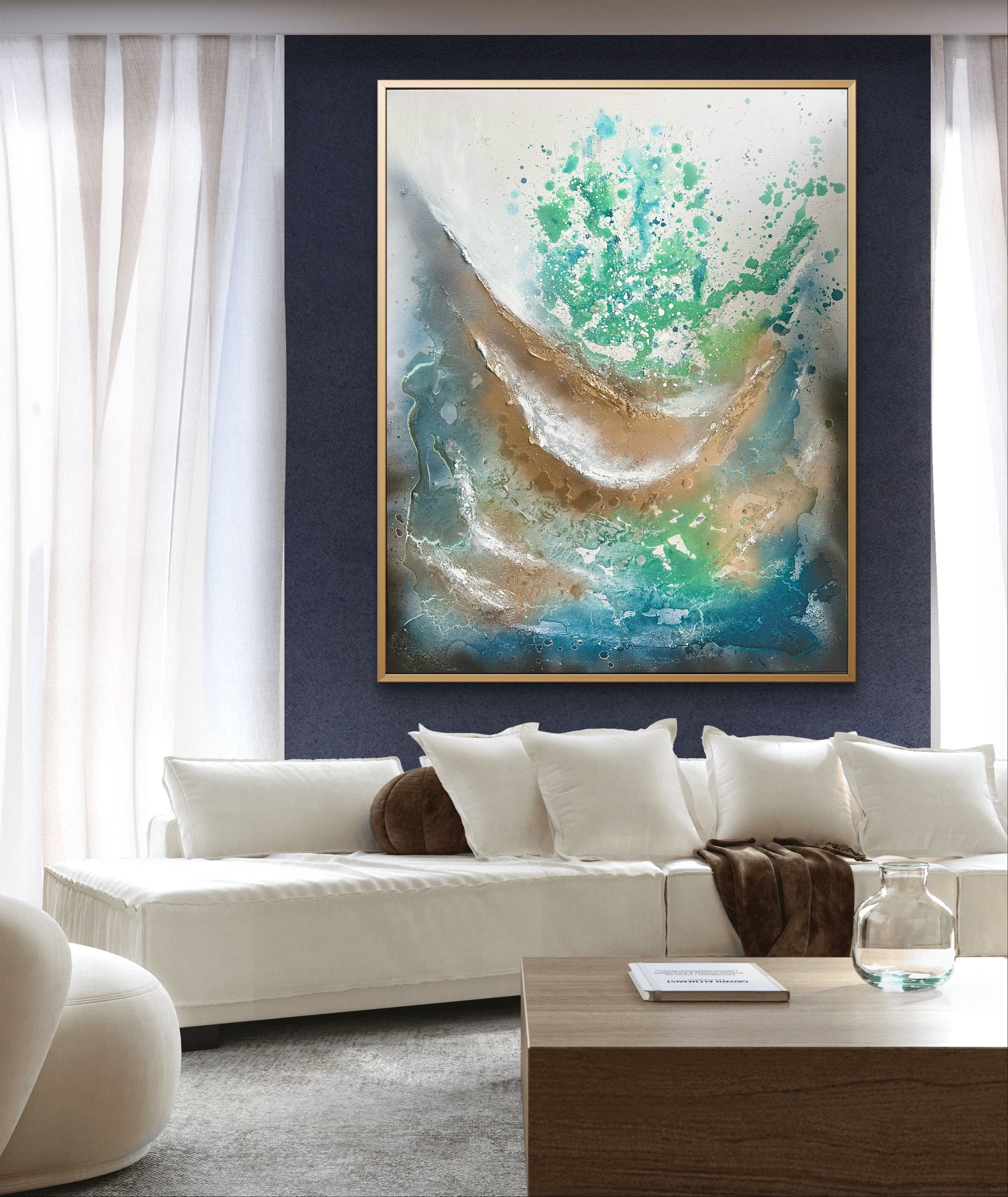 Abstract acrylic painting on 100 % stretched cotton canvas. Epoxy touches.