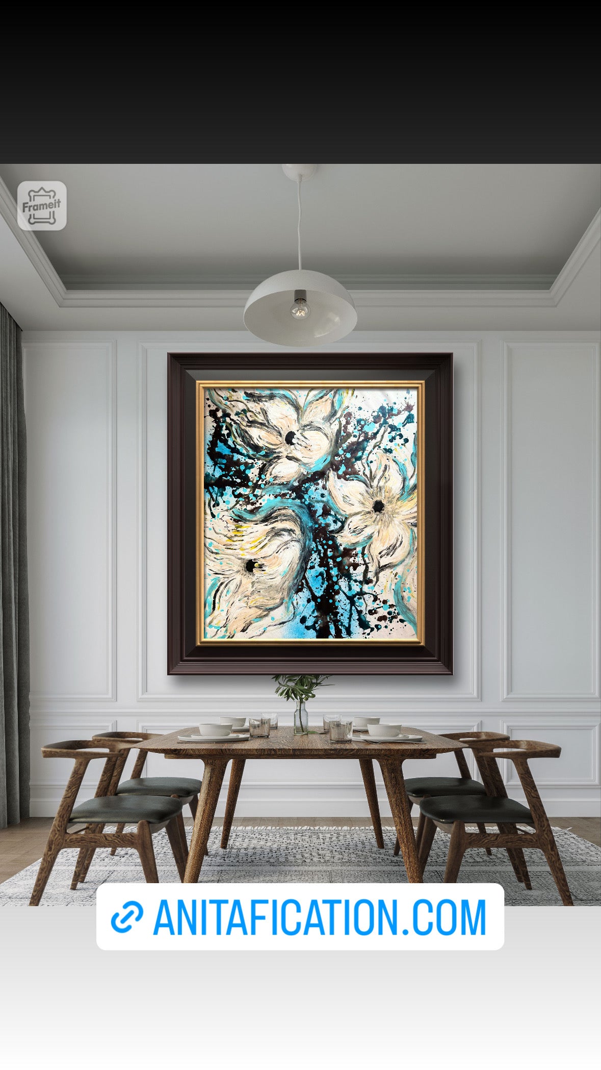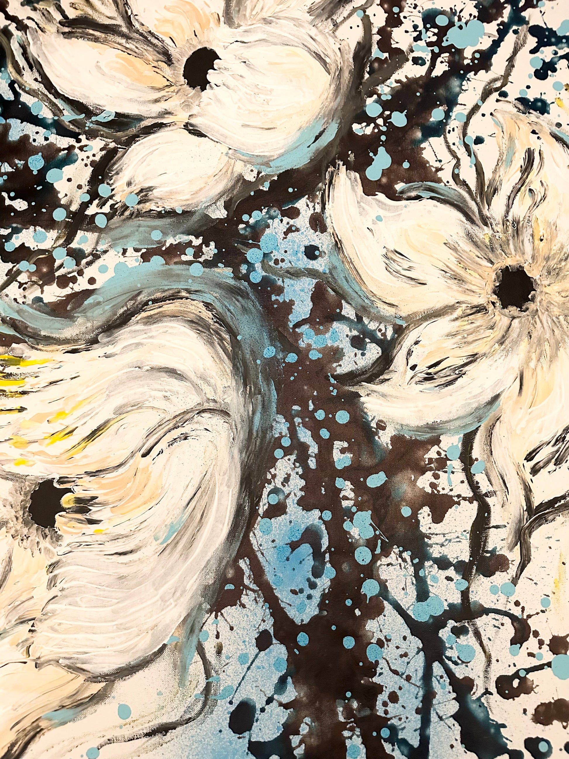 White blue is acrylic abstract painting on 100% cotton canvas.